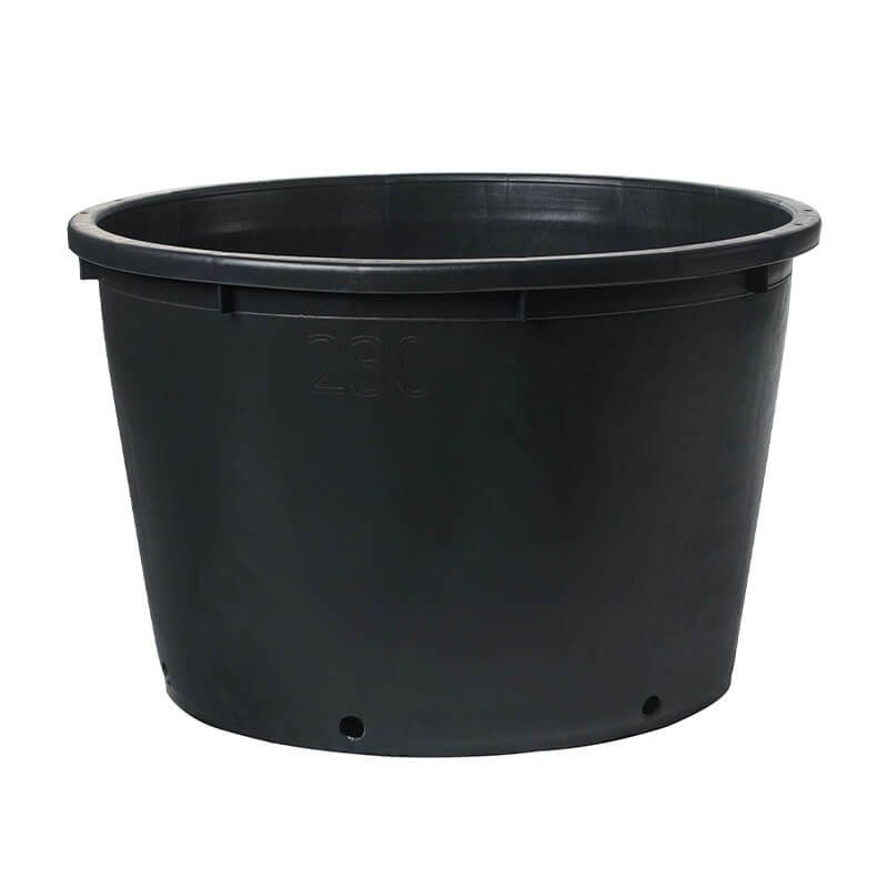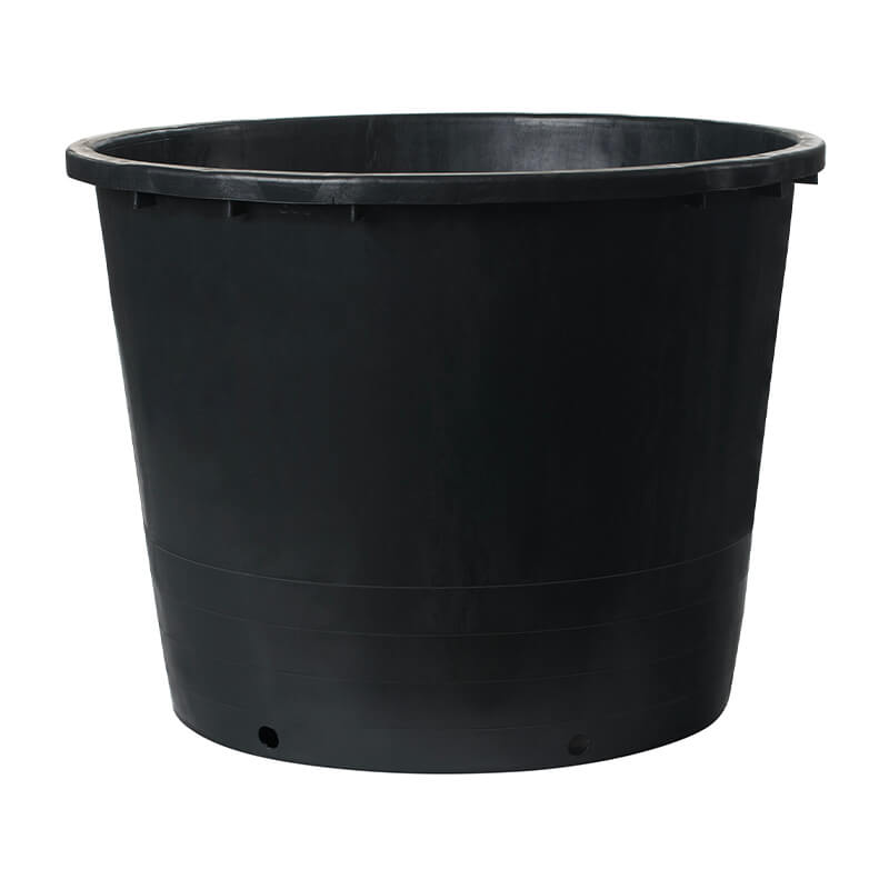 Gama completa de cubetas sin asas también apta para plantas grandes. Color negro. Bajo pedido también disponible sin agujeros para acuacultura.