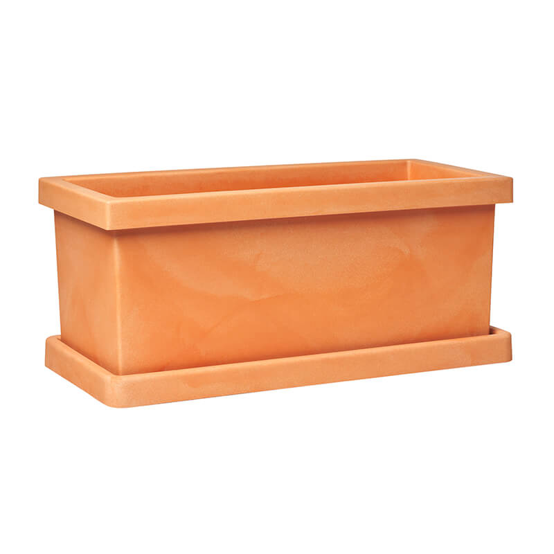 Plato rectangular de resina termoplástica para el macetero Sagitta.